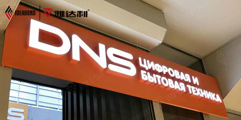 户外门头:聚酯铝塑板具有轻便耐用易加工可塑性强的特点 可适用于各类场所户外门头装饰,如商业街、酒店、宾馆、办公楼、广场等